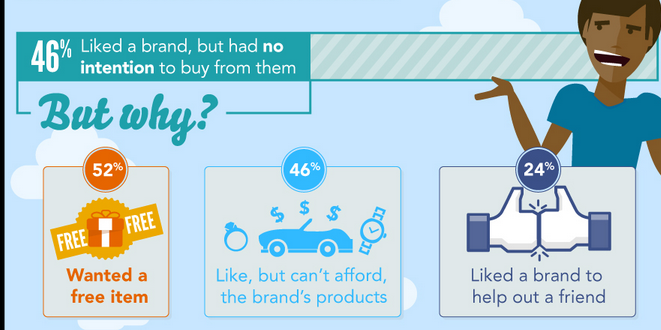 You see this above? Of the 46% of respondents said they Liked a brand on Facebook, over half of them said they did so to get something in return, AKA something for free.