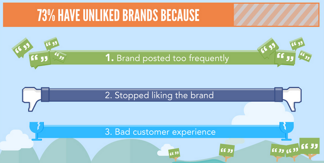 There are a couple of other interesting findings from the survey/infographic and I want to share one with you and it deals with the ways brands can turn people off to the point of they (aghast!) un-Like them on Facebook: